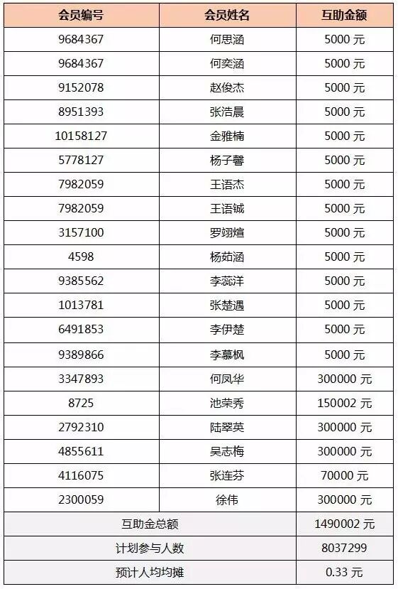 参与本次互助金均摊的为2017年8月22日零时前加入大病医疗互助计划的会员。
