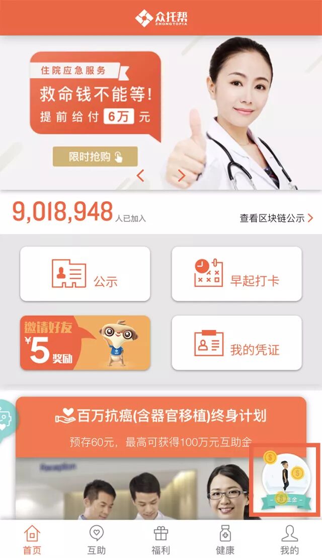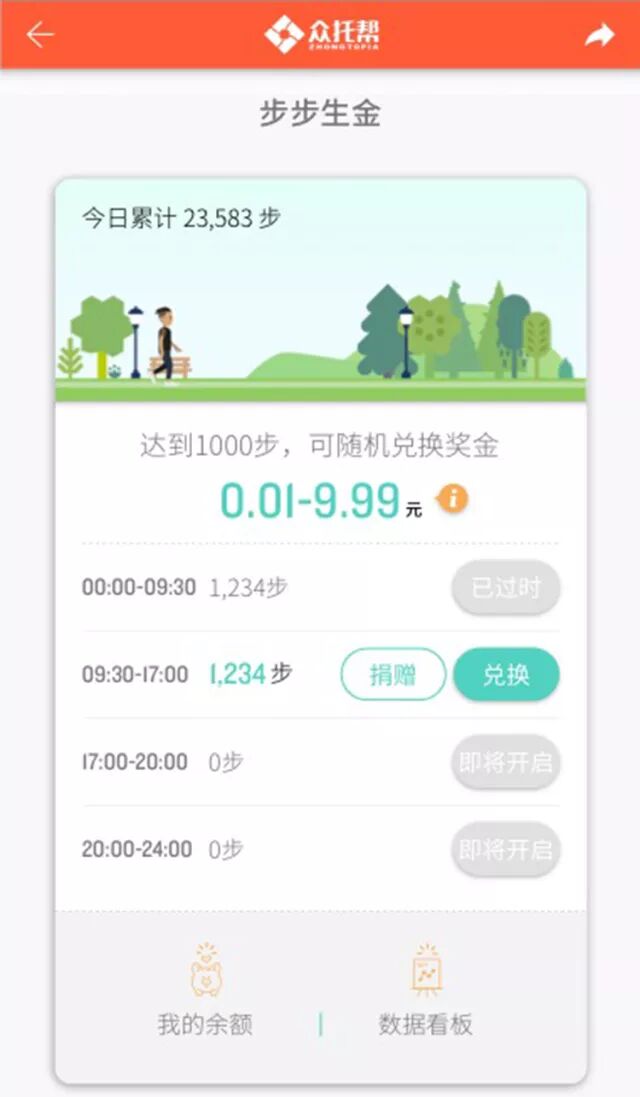步步生金 步步生金应该是众托帮最大的健康福利了,每天4个时间段,只要运动步数超过1000步,就可以随机兑换红包。一天4个,天天都有,真的是领到手软啊。 在哪领取呢? 1、下载众托帮APP,你可以发现一个“行走的小人”(如图)。该福利为众托帮APP用户专享福利,记得及时更新到最新版哦。 或者你可以进入APP中底部的【健康】页面,点击【兑换奖金】即可 【领取规则】 在众托帮APP内,每天四个时间段 00:00-09:30;09:30-17:00 17:00-20:00;20:00-24:00 只要运动步数超过1000步 即可随机兑换奖金 你也可以将你的运动记录分享给身边的朋友,简直不要太贴心~ 兑换的奖金数可以直接在【爱心罐】中查看 小帮亲测,最高的一天领到了1.5元 如果坚持天天都领 整年的互助费就靠它了,妥妥的! 【 更多问题 】 若有其他任何疑问 可以直接咨询我们的在线客服 或直接拨打客服热线4000004530 客服会在看到信息的第一时间回复